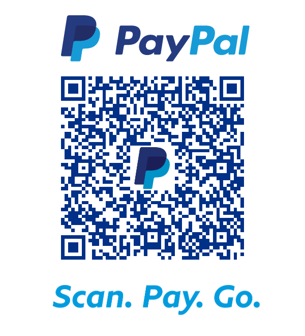 or via the following QR Code in the PayPal app. Click Scan, then scan the QR Code, enter the amount to donate, select your payment method, then tap Pay Now.